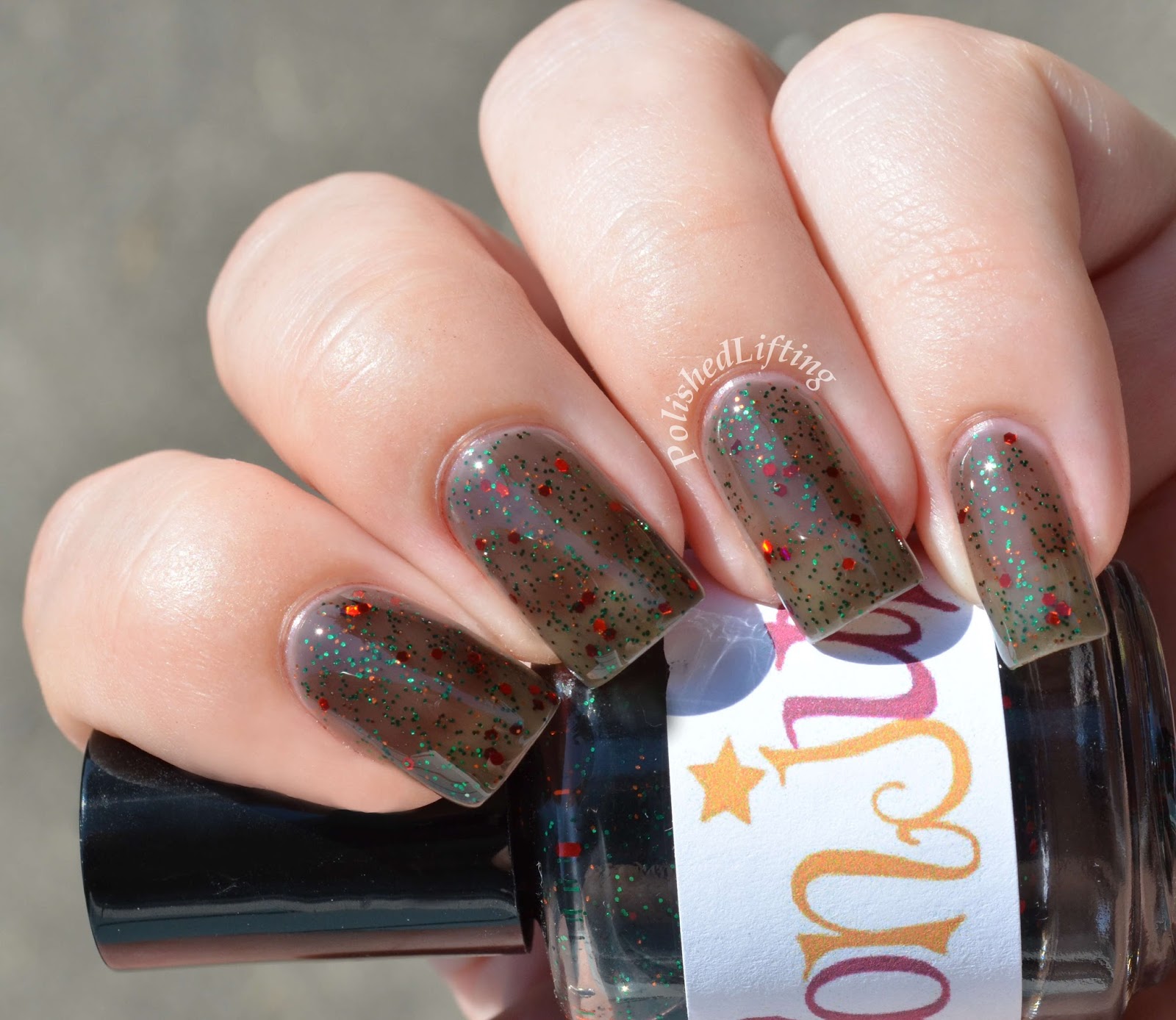 Songbird is a black jelly with red, orange and green glitter. The formula suspended glitter nicely without being too thick. I found that three coats provided a nice amount of coverage, but you could certainly add a forth for more depth.