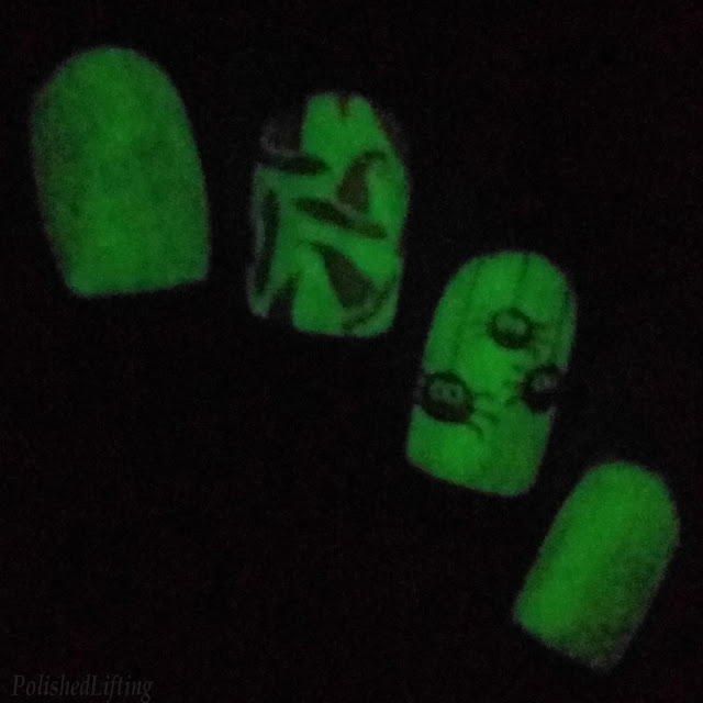 If you're anything like me, you might forget that you applied a glow in the dark top coat. I discovered the glow that evening when I went to bed.